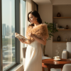 - VINTAGE INSPIRED MARABOU FEATHER STOLE - CARAMEL (SG1)