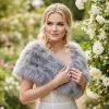Grey Vintage inspired genuine marabou feather bridal stole. High quality Glamorous and stylish.. This stole is manufactured with a hook and eye fastening. Size is 100cm long and 20cm wide.