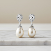 Vintage inspired pearl drop earrings with high quality cz crystals on a rhodium plated finish. Size is approx 5cm long. Matching necklace also available